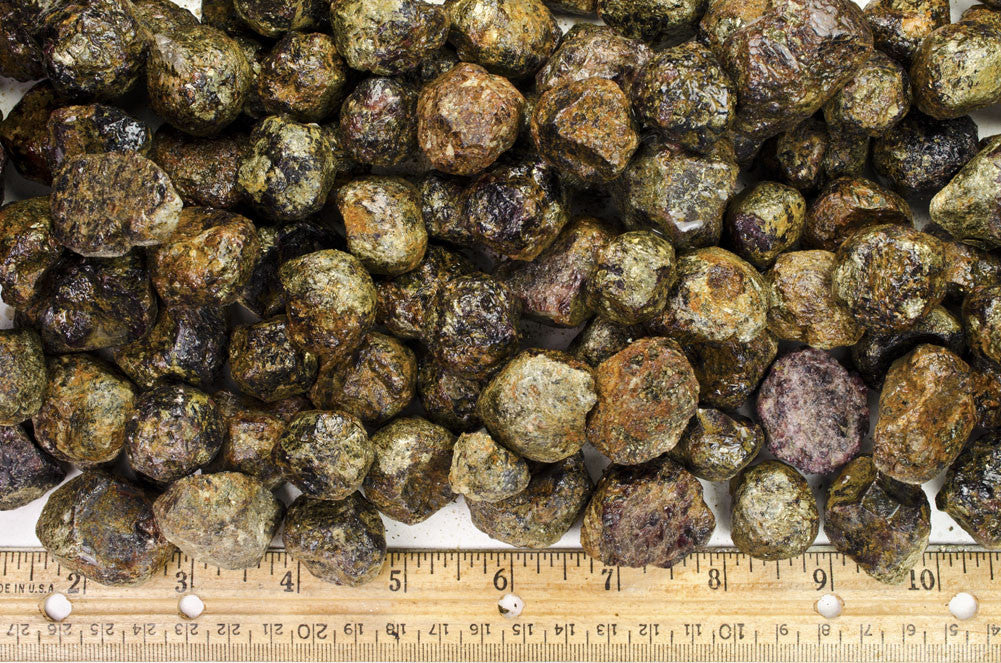 The Fantasia® brand of Rhodolite Garnet rough you are ordering is 100% natural and imported by the ton directly from Asia to Fantasia Mining's USA rock yard. This material has beautiful natural ball like shape and is perfect for tumbling, polishing, cabbing, cutting, wire wrapping or keeping in it's natural form as a specimen. Your order will contain multiple pieces of this spectacular material of varying natural sizes, shapes and patterns as shown in the images which are equal to or greater than the weight purchased.